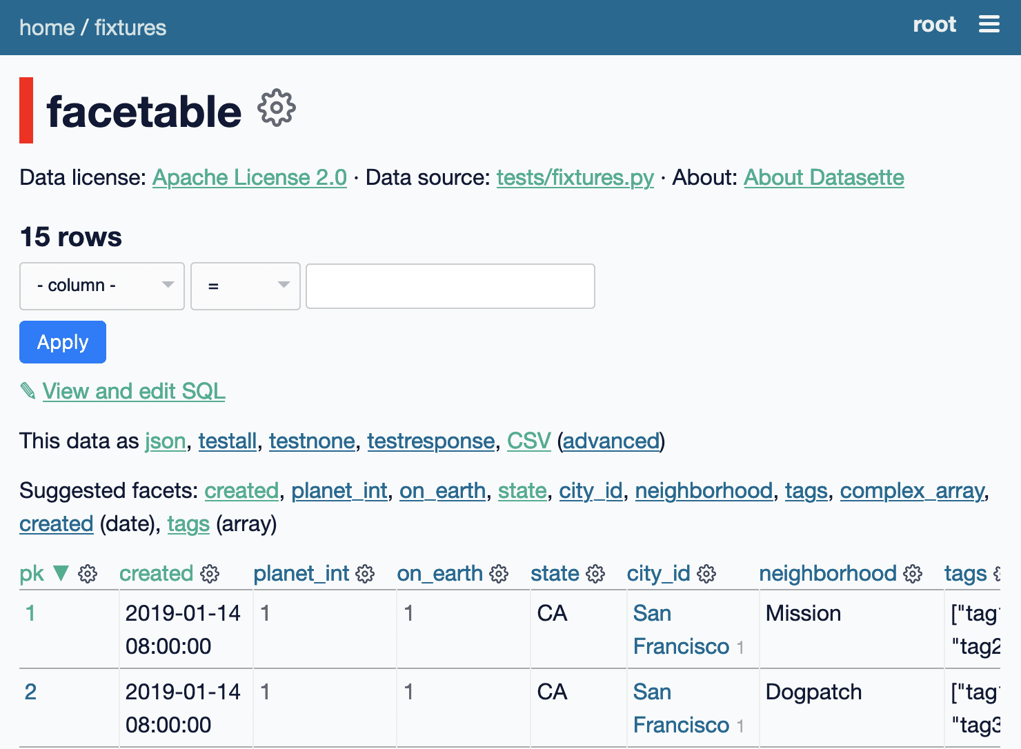 /databasename?sql=interface and JSON API for executing arbitrary SQL queries can now be found at/databasename/-/query?sql=. Requests with a?sql=parameter to the old endpoints will be redirected. Thanks, Alex Garcia. (#2360)Metadata about tables, databases, instances and columns is now stored in Datasette's internal database. Thanks, Alex Garcia. (#2341)